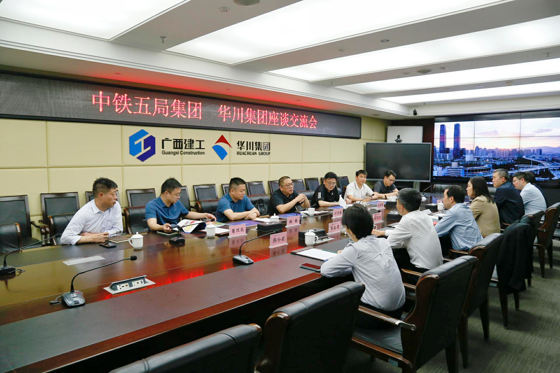 中鐵五局一公司副總經(jīng)理苗憲強(qiáng)、副總經(jīng)理陳敏、投資部部長(zhǎng)施怡、市場(chǎng)開發(fā)部部長(zhǎng)董興兵,集團(tuán)副總經(jīng)理鄧衣君、副總經(jīng)理王思思、市場(chǎng)開發(fā)部部長(zhǎng)燕小亞、投資發(fā)展部副部長(zhǎng)許韶奇參加座談。
