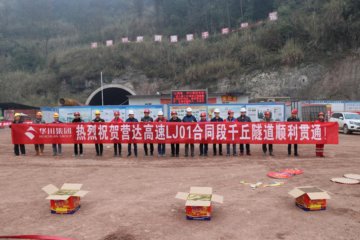 2018年12月19日12:20分,營達高速公路營達一標千丘隧道最后一炮聲響從正在施工的隧道內(nèi)傳出,待隧道內(nèi)煙塵散去,隧道兩頭的施工工人成功“會師”,至此,營達高速公路LJ01標第二座隧道 — 千丘隧道全線順利貫通!