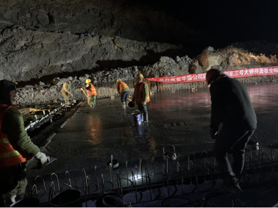 (劉家3#大橋夜間施工橋面板收面作業(yè)中)